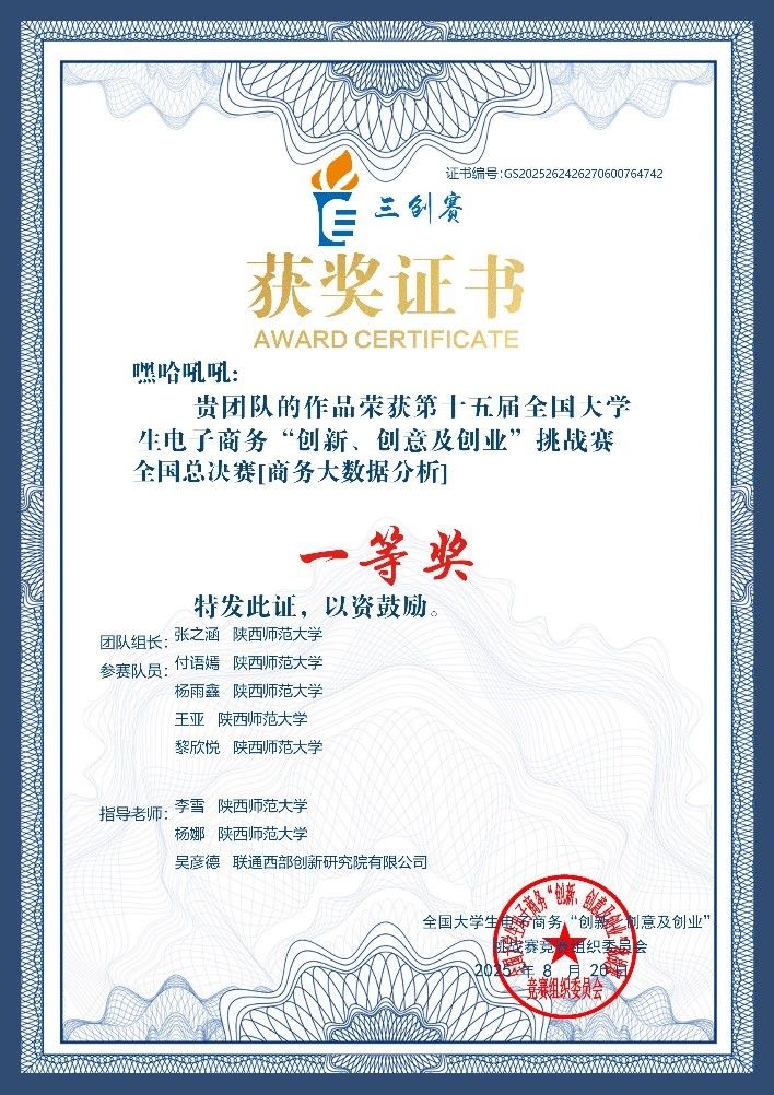 此次斩获全国一等奖,不仅是对嘿哈吼吼队全体成员辛勤付出的肯定,更是我们将创新创业教育和专业教育深度融合取得良好成果的体现,也是商学院在该比赛上的又一突破。未来,学院将继续深化创新创业教育改革,为学生搭建更多实践平台,助力培养更多具备创新精神与创业能力的人才。学校也将以此次成绩为契机,进一步深化学科交叉融合,推动创新创业教育与专业教学深度结合,培养更多兼具家国情怀与创新能力的高素质人才,为服务国家数字经济发展与西部振兴战略贡献师大力量。