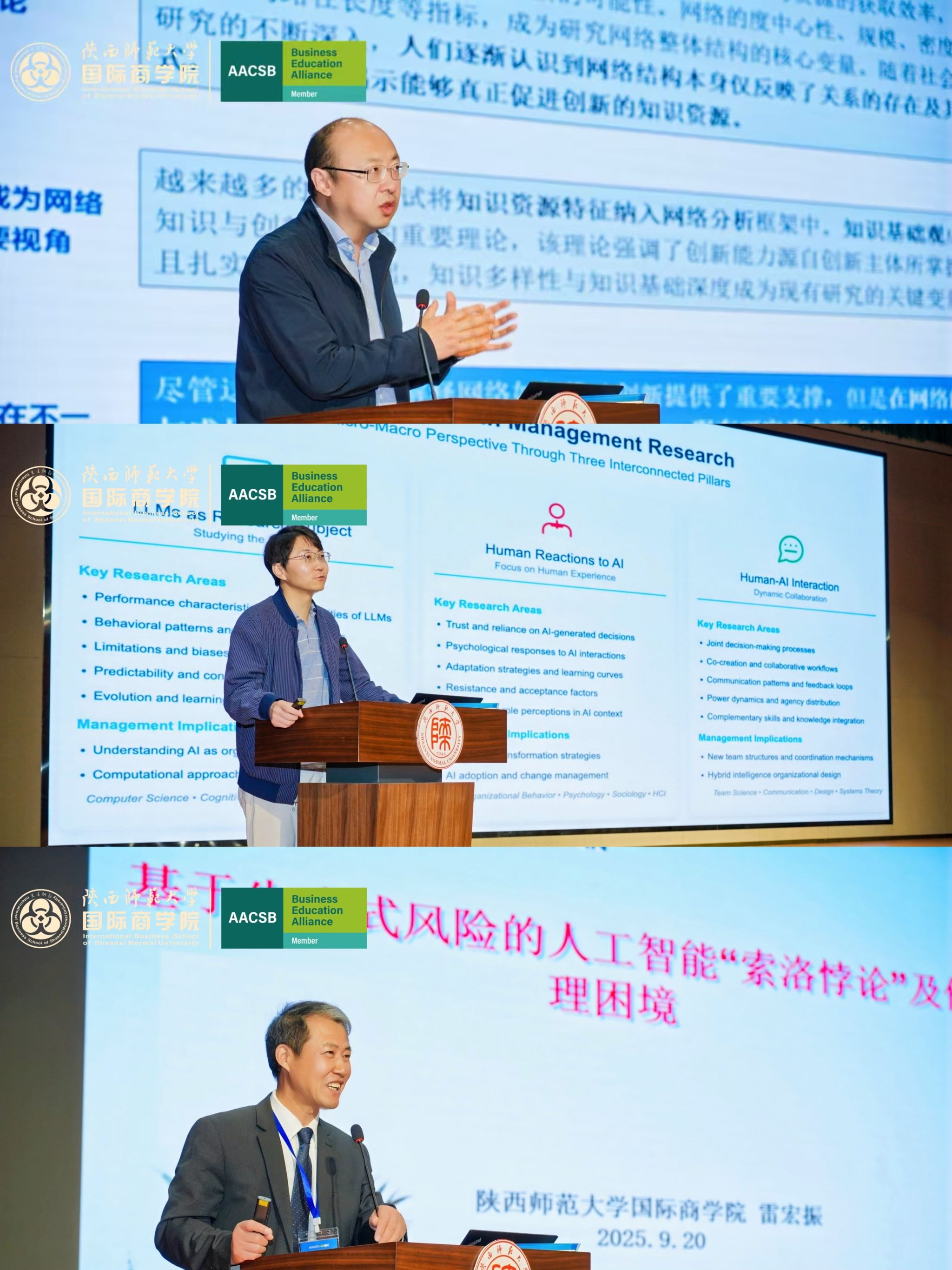 2025年9月19日至21日,2025“人工智能驱动的科学学理论与方法创新”专题研讨会在我们长安校区国际教育大厦成功举办。本次研讨会由《科学学研究》杂志社、中国管理现代化研究会技术与创新管理专业委员会和太阳成集团tyc714cc共同主办,我们科技处、社科处协办。国家自然科学基金委员会管理科学部副主任吴刚、《科学学研究》期刊主编赵兰香、上海交通大学安泰经济与管理学院教授李垣、中国科学院大学公共政策与管理学院特聘教授陈凯华、同济大学经济与管理学院院长谢恩、清华大学经济管理太阳集团领导力与组织管理系系主任李宁、长安大学副校长杜强、我们副校长王云博、西安部分经管学院院长以及我们师生近400余人齐聚一堂,共同探讨人工智能技术如何在科学研究范式,推动学科融合与理论方法创新。